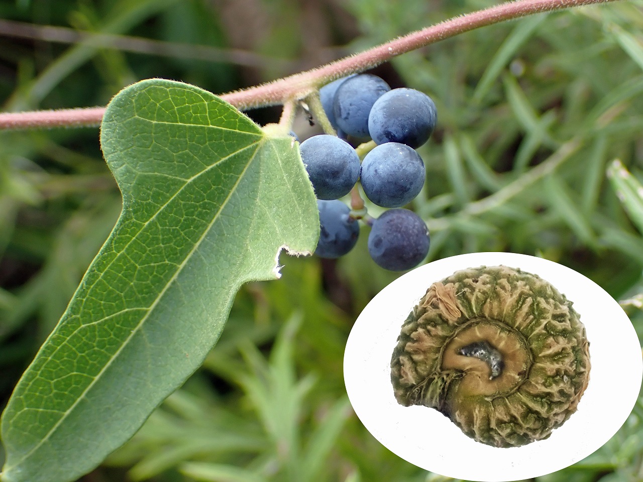 イボタノキ(花)、ノイバラ(花)、ヤマグワ、ナワシロイチゴ(花)、オニグルミ(実)、ツルウメモドキ(花)、ノブドウ、テリハノイバラ、