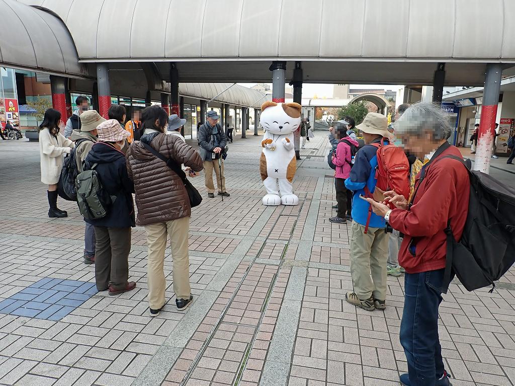 駅の目の前には紅葉に染まった小山内裏公園が見えています。広沢さんの説明を中心に好奇心旺盛な皆さまの指摘も記録します。