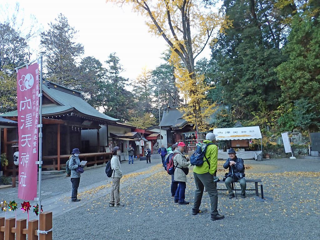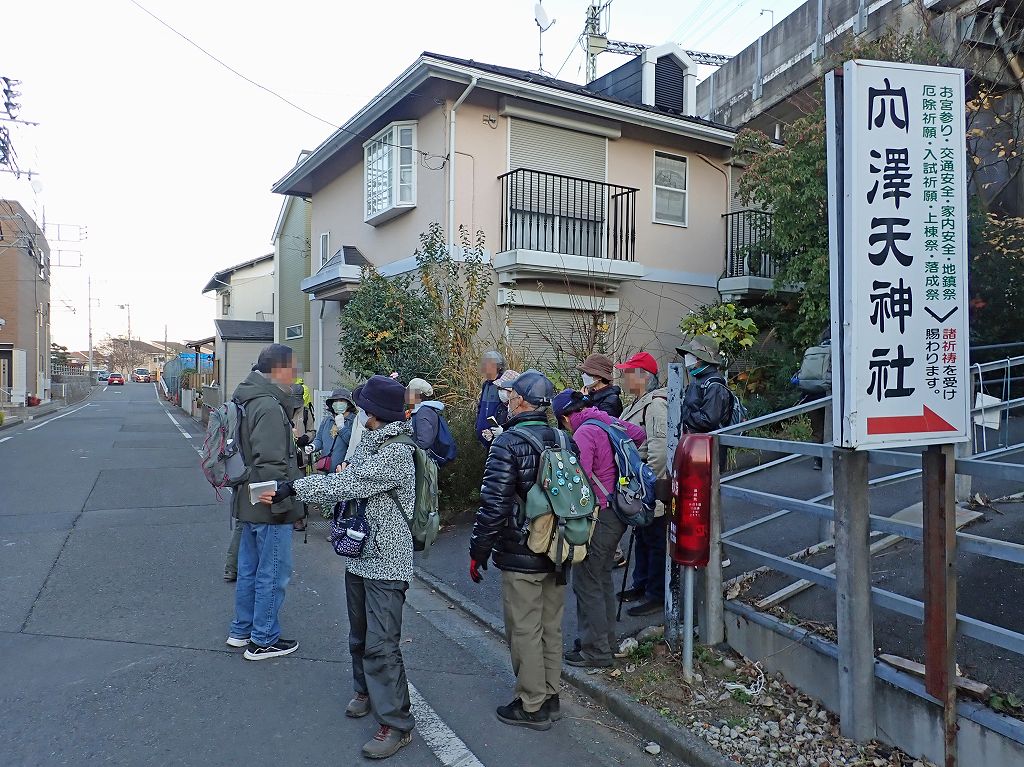 穴沢天神へ向かい、右道にそれます。急な坂道があり慎重に降ります。トイレ休憩。