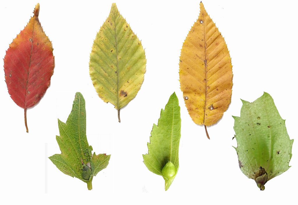 チョウセンレンギョウ(茎内に隔壁あり、葉幅広い、葉鋸歯が深い)、ナツヅタ紅葉、