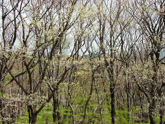 今日は。 ミズナラはブナと同じ部類の落葉高木です。高さ30メートル直径2mになる高木で、北海道、本州、四国、九州と広く分布します。本州では標高1000メートル以上に育ちます。 そして、標高がそれ以下になれば同じ種類のコナラの生育地域です。ミズナラは陽樹といって明るい場所を好む樹木でその林は明るく、東京近辺でいえば武蔵野の雑木林に近い感じを抱かせます。 カツラ、トチノキ、ホオノキ、イタヤカエデなどとともにブナの森を構成する主要な樹木で、その芽吹きはブナとやや異なり、一見白い粉を吹いたように見える森の姿が特徴です。 瓜田洋治