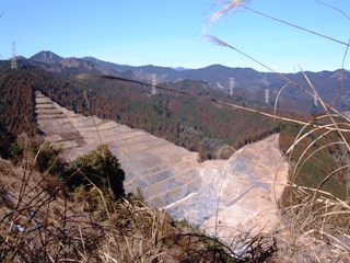 - この辺は採石会社の土地で境に、黄色い金網が尾根に沿って張りめぐされている。